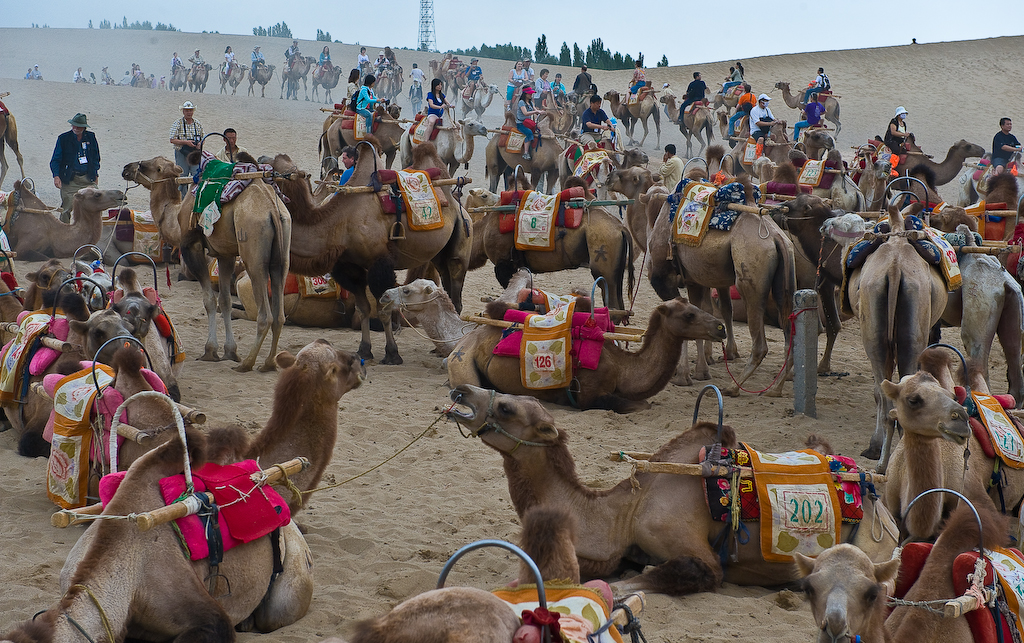 Camels waiting for riders