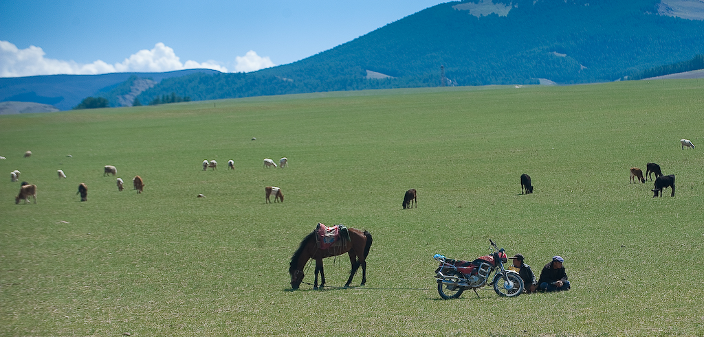 Competing transportation for Uyghur cowboys in the Ba Li Kun Grasslands