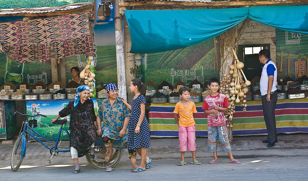 Old and young at Grape Valley market street